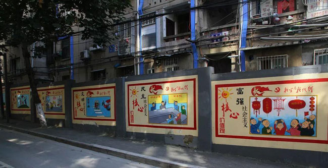 为进一步宣传社会主义核心价值观,挹江门街道在辖区主干道、人流量大的虎踞北路122号,选出面积约133平方米的墙体进行社会主义核心价值观内容手绘,用简洁活泼的形式使周边居民、来往群众对社会主义核心价值观的内容入脑入心。